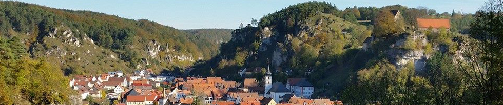 Im Herzen der Fränkischen Schweiz, idyllisch gelegen, mit der mittelalterlichen Burg und den drei Flüsschen im Tal, wartet das Städtchen Pottenstein auf Ihren Besuch.
